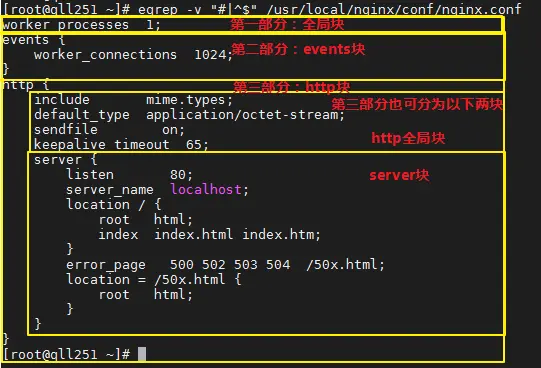 我们在讲解 Nginx 配置文件详解 中, 把Nginx的主配置文件分成了三部分,如图: