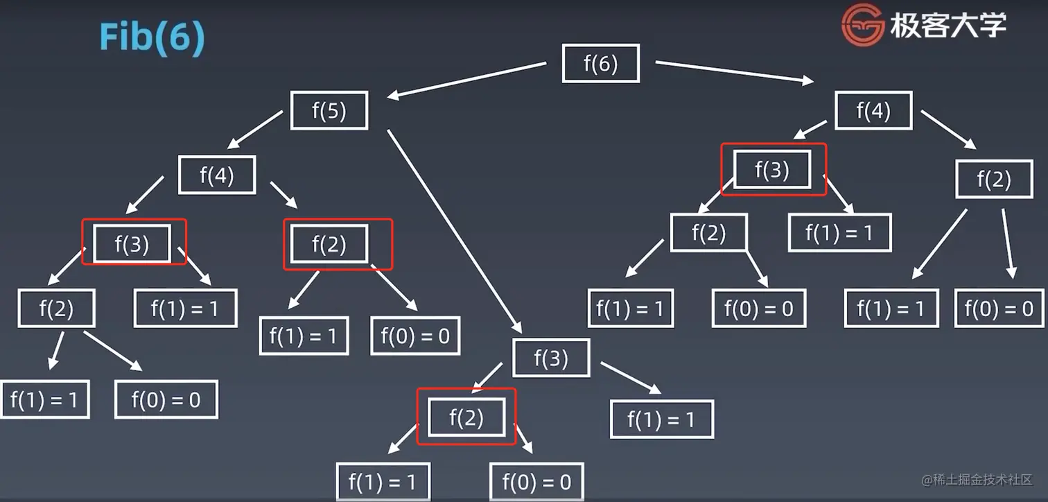 会发现有大量的冗余值,导致呈现指数阶的增长。所以面试的时候一定不要这么写。要么通过缓存将这些中间结果缓存下来,要么直接用循环来写完这整个Fibonacci数列求n项和。