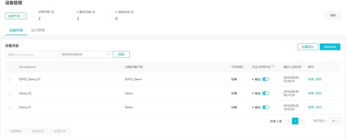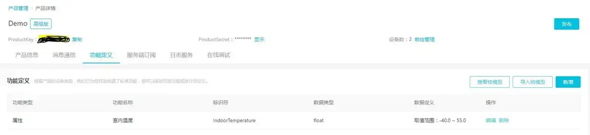 在云端建立一个高级产品,并创建两个设备,以供ESP32 和PC连接。