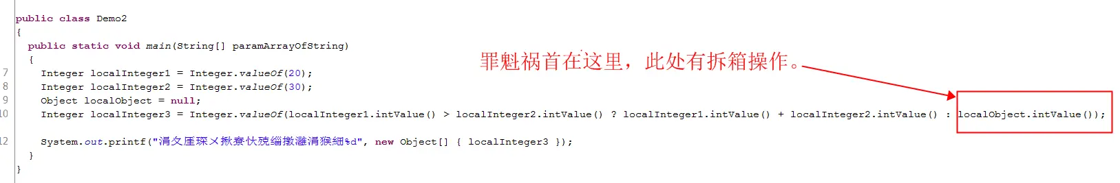 看到这个错误后我一愣,明明是拿包装类接收的返回值?不应该报空指针错误的啊?然后我将class文件反编译了一下,此时错误一目了然。