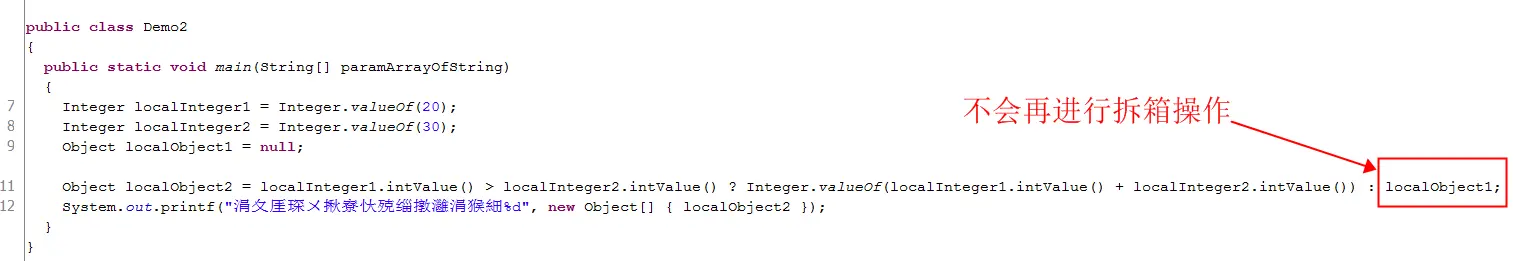 真相大白!当表达式1和表达式2进行类型对齐时抛出了空指针异常。那么什么时候会出现类型对齐的情况那?我总结了以下两种会发出类型对齐的拆箱操作。