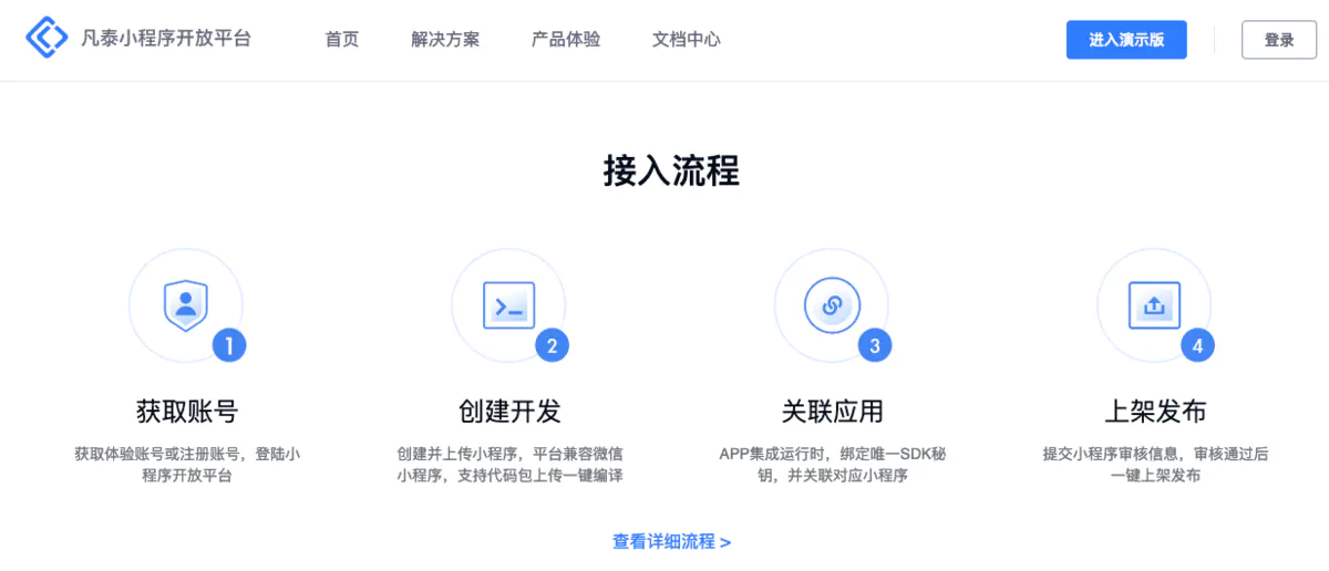 凡泰小程序当前已经开放了一键部署功能,现可免费体验,只需5行代码30分钟,即可在您的应用内集成「小程序运行时」,点击mp.finogeeks.com/#/experienc…进入官网通过手机号即可完成注册体验