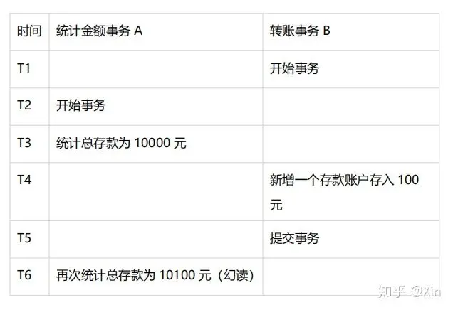 幻读(Phantom Read):事务 A 重新执行一个查询,返回一系列符合查询条件 的行,发现其中插入了被事务 B 提交的行。