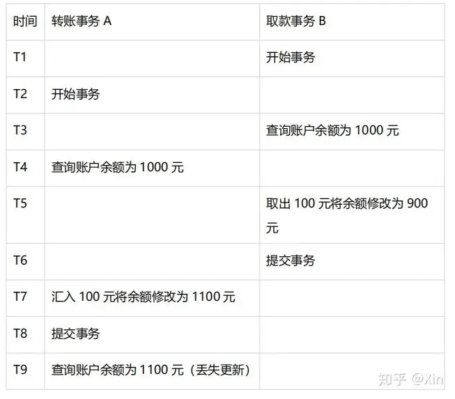 第 2 类丢失更新:事务 A 覆盖事务 B 已经提交的数据,造成事务 B 所做的操作丢 失。