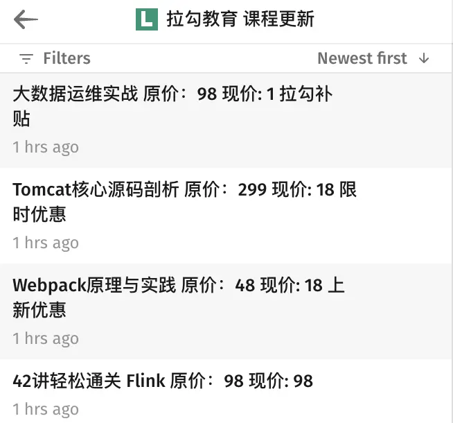 嘿,家人们!最近拉勾网也开始做在线教育了,推出了好多1元的课程,香不香!