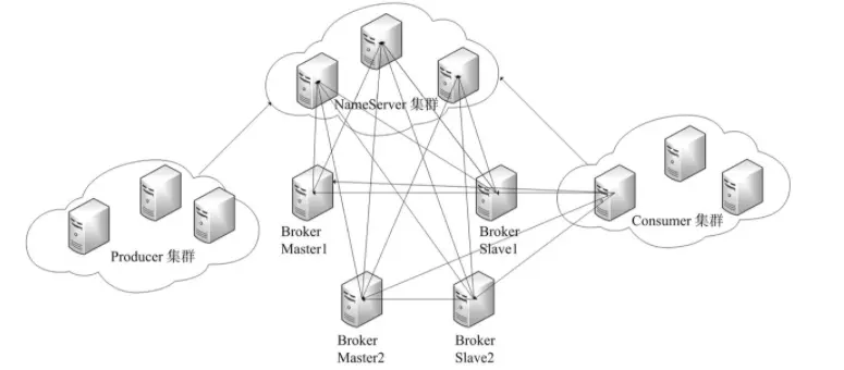 上面是一张RocketMQ的物理部署图,其中,NameServer类似zookeeper,为整个RocketMQ集群提供协调和治理,主要维护Borker、Topic的信息,监控Broker的运行状态。