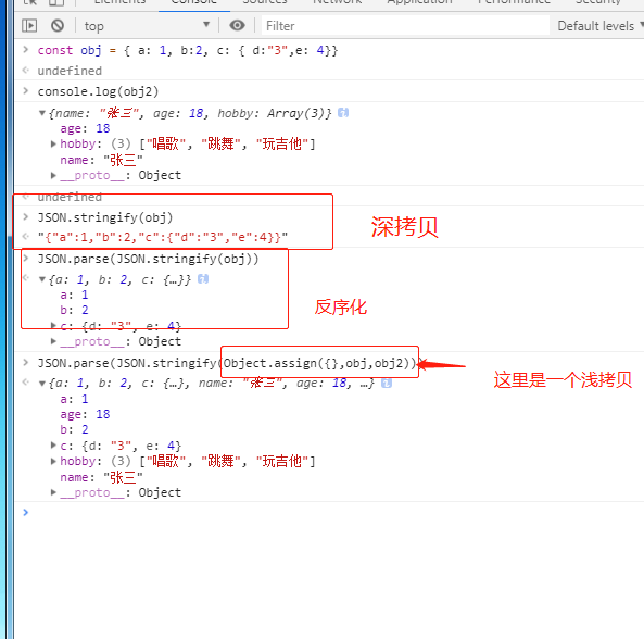 但是存在局限性,无法实现对对象中方法的深拷贝,会显示为undefined (这次面试就问到了这个,我没答对)