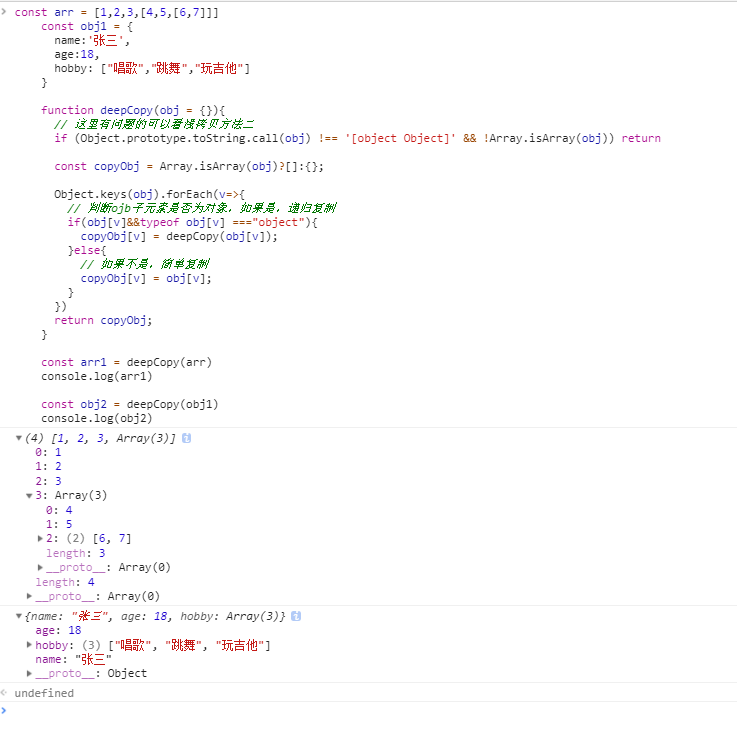 还有一个ES6的扩展运算符,[...arr], 扩展运算符和slice一样,当数组里面的值是基本数据类型,