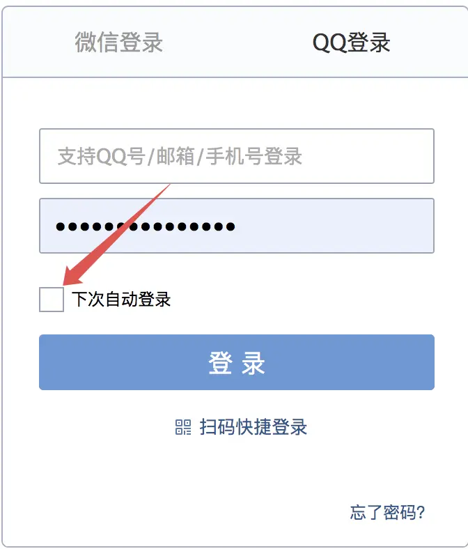 自动登录是我们在软件开发时一个非常常见的功能,例如我们登录 QQ 邮箱: