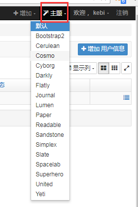 - 后台管理系统可以切换主题。左侧每一个功能都有列表显示, 增删改查,筛选功能。