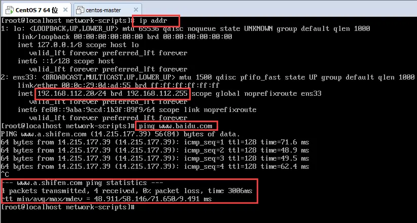 # 查看网络地址,是否配置生效