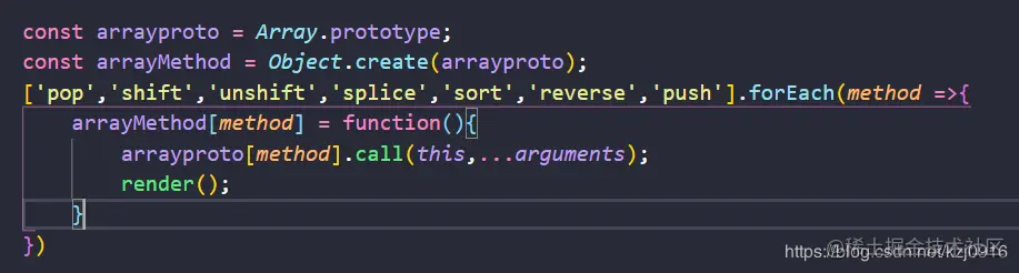 - 第四步进行了两步操作。首先是对数组的原型方法进行重写,methodsToPatch