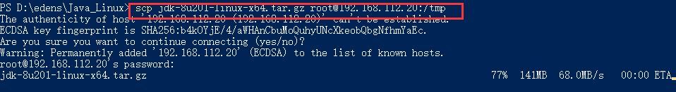 scp jdk-8u201-linux-x64.tar.gz root@192.168.112.20:/tmp