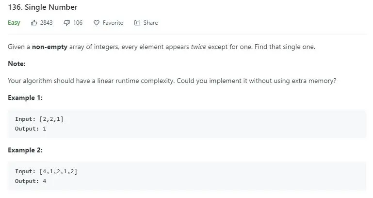 解法一利用 HashMap 计数算是一个很常用的思想了。解法二的数学推导理论上还能想到,解法三的异或操作真的是太神仙操作了,自愧不如。