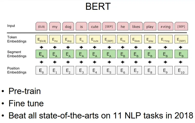 如果再深入追溯最近几年最重要的发展,会发现 BERT 是一个典型代表。以 BERT 为代表的预训练算法得到了快速的发展,基本上所有的算法都采用了预训练+微调+ Fine tune 的方法,如下图所示: