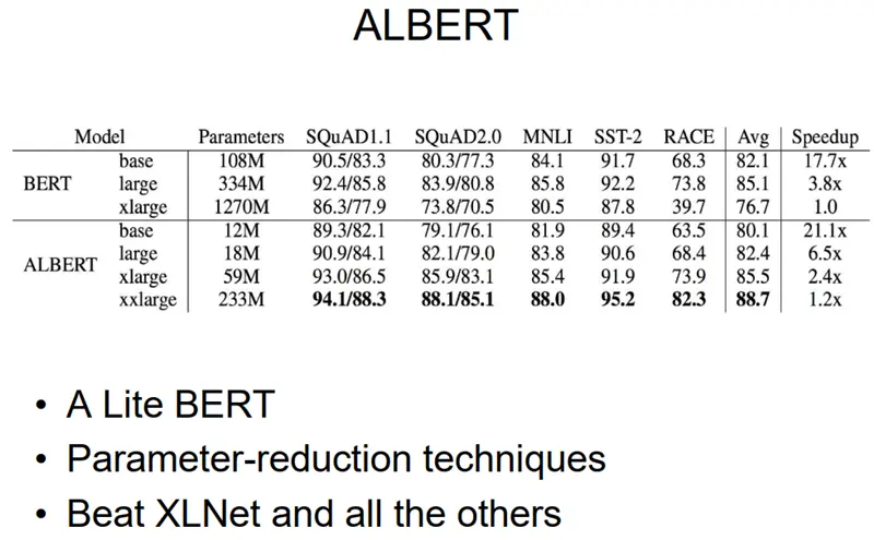 再后来,ALBERT 又超过了 XLNet 和原始的 BERT。整个 BERT 的发展引发了后续一系列的工作。