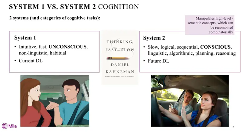 在去年的 NIPS 上,图灵奖获得者 Bengio 在大会主旨报告的 Keynote 也提到,System 1 到 System 2 的认知是深度学习未来发展的重要的方向,如下图所示: