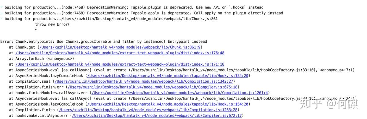 如果存在以下错误,那是由于extract-text-webpack-plugin不兼容webpack4造成,官方推荐的使用mini-css-extract-plugin来替换使用。