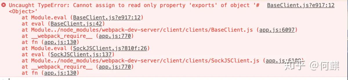 在dev环境下运行,发现报错,我们可以通过修改webpack.base.conf.js中的配置来解决。