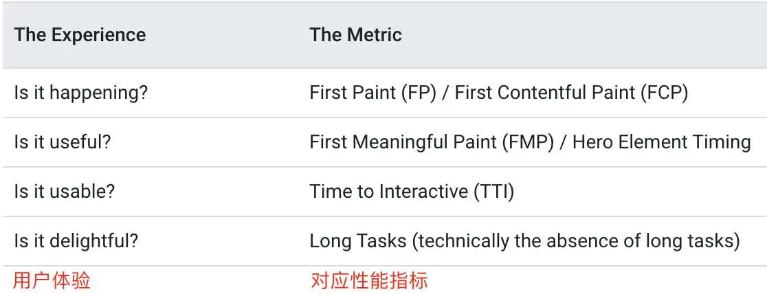 我们来看看 google 开发者针对用户体验,提出的几个性能指标