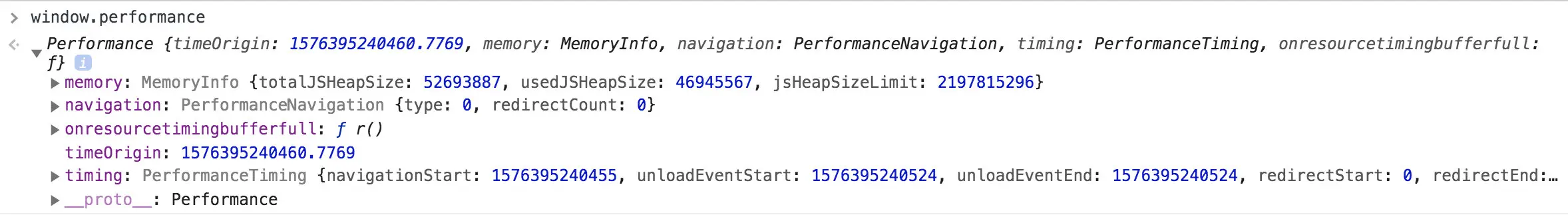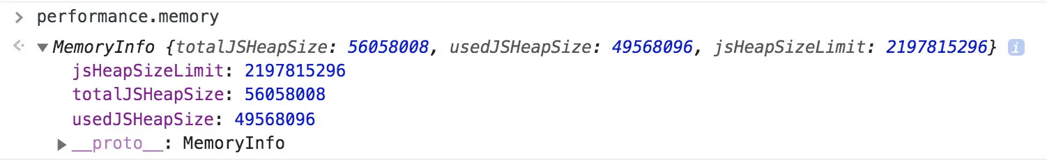 performance.memory: 基本内存使用情况,Chrome 添加的一个非标准扩展