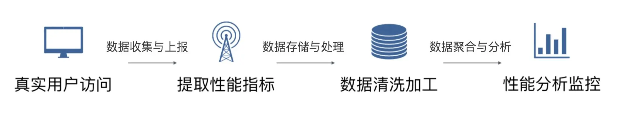 总体流程:性能指标收集与数据上报—数据存储—数据聚合—分析展示—告警、报表推送