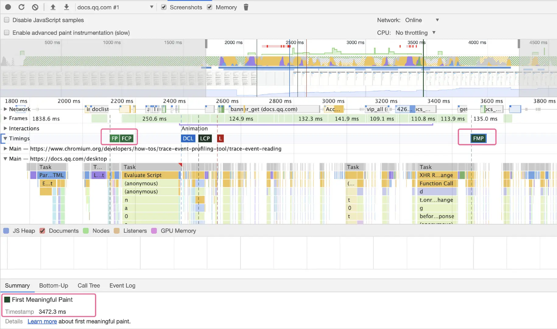 first load 与 first meaningful 的区别: