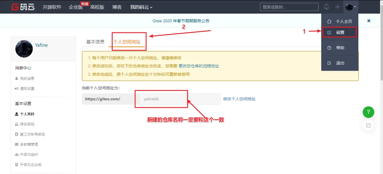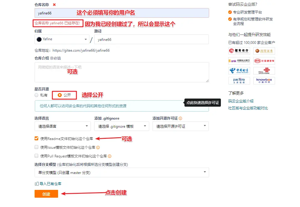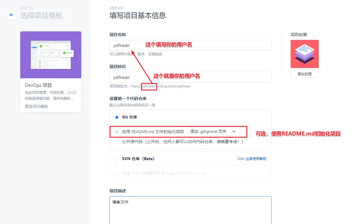 注意:仓库名称必须要和用户名一样,否则最后部署出来会出现无样式的效果或者其他不正常的显示。