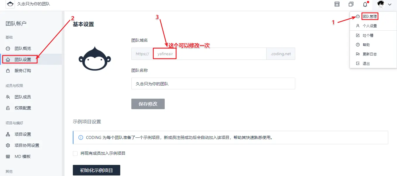 团队域名可以修改一次,会显示一个修改笔的图标,因为我修改过了,所以就没显示。