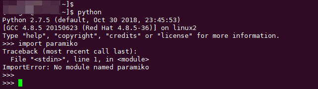 然后直接使用 python 进入 console 模式,现在已经可以直接使用 paramiko 这个包了。