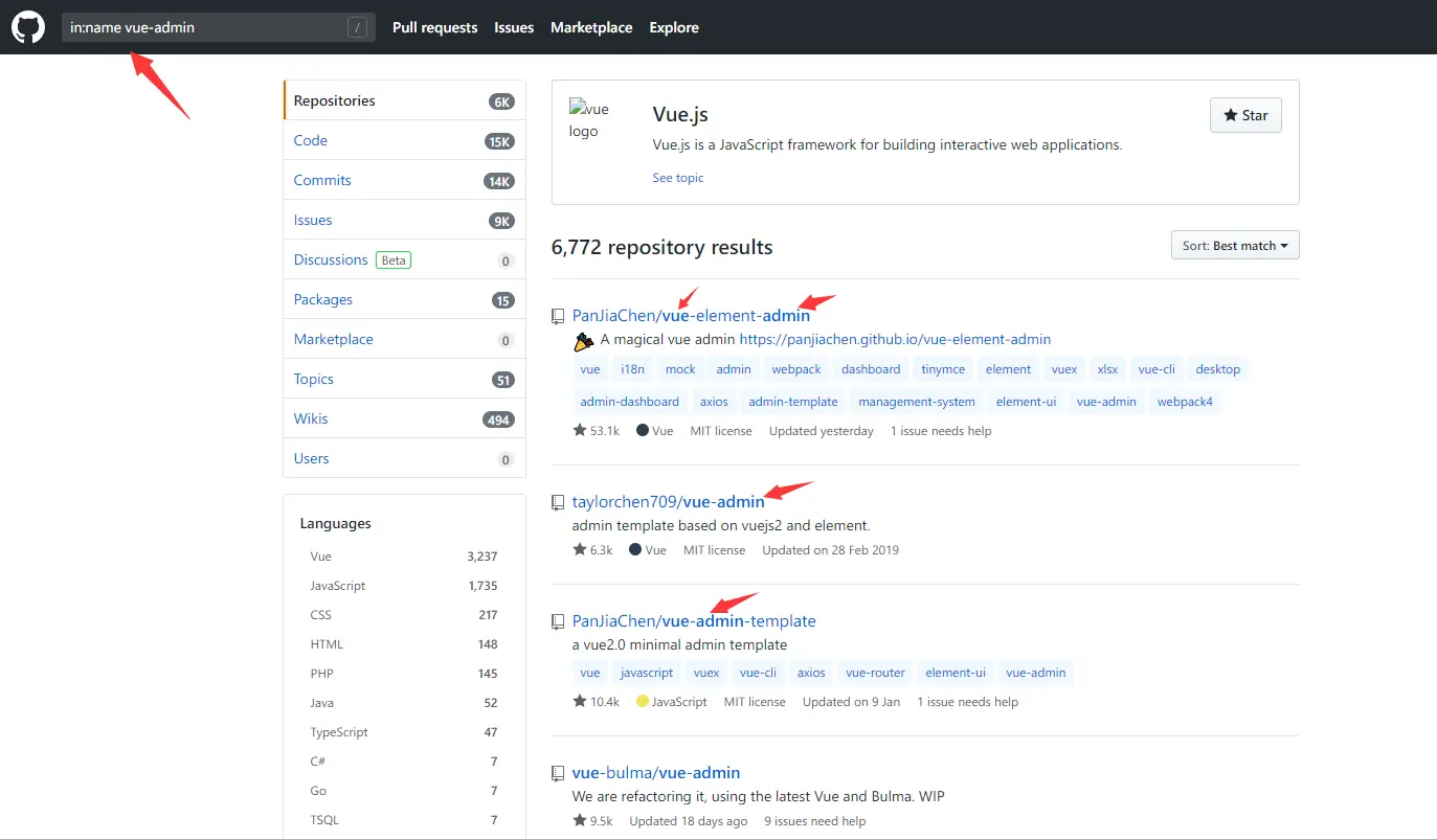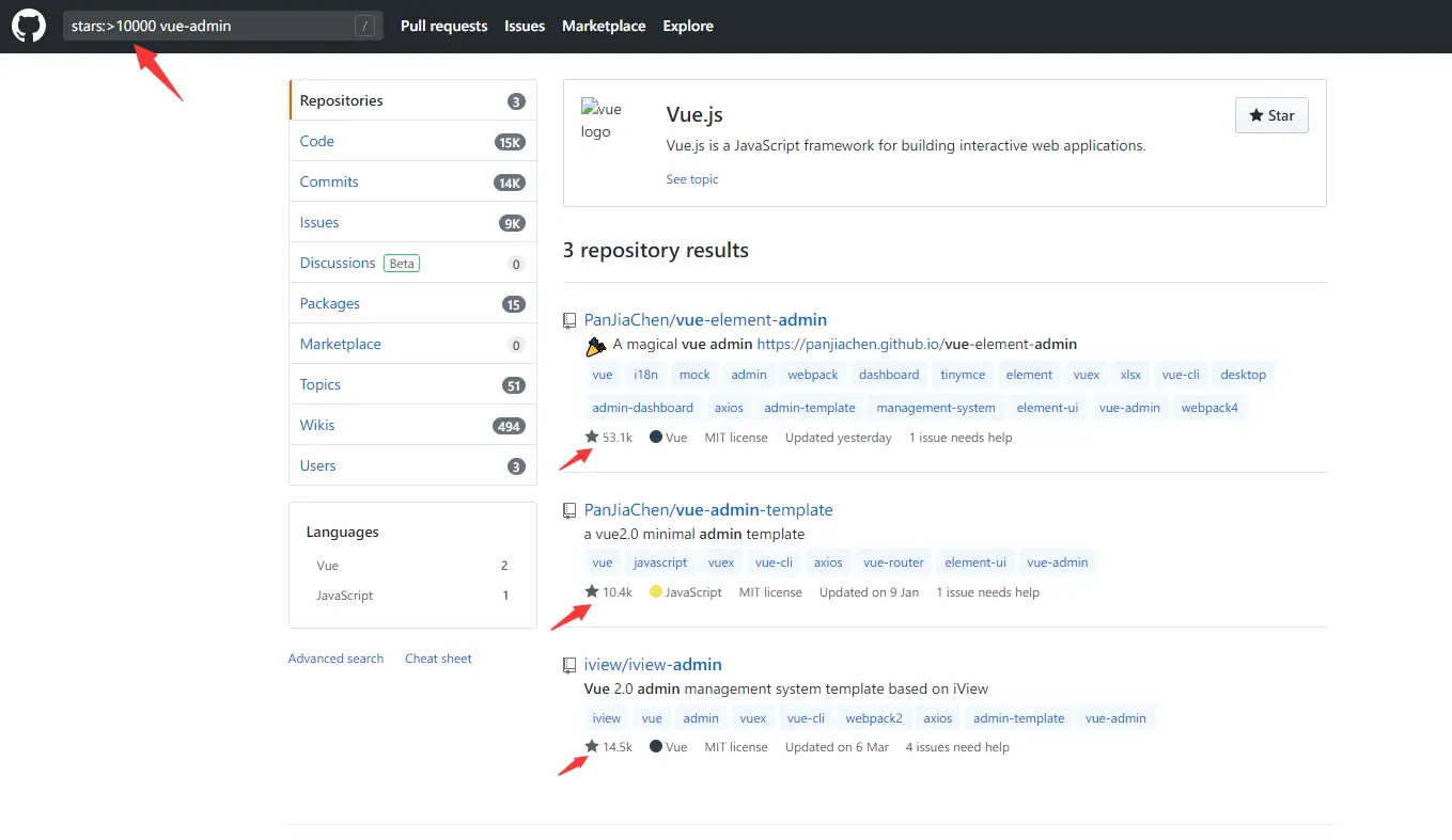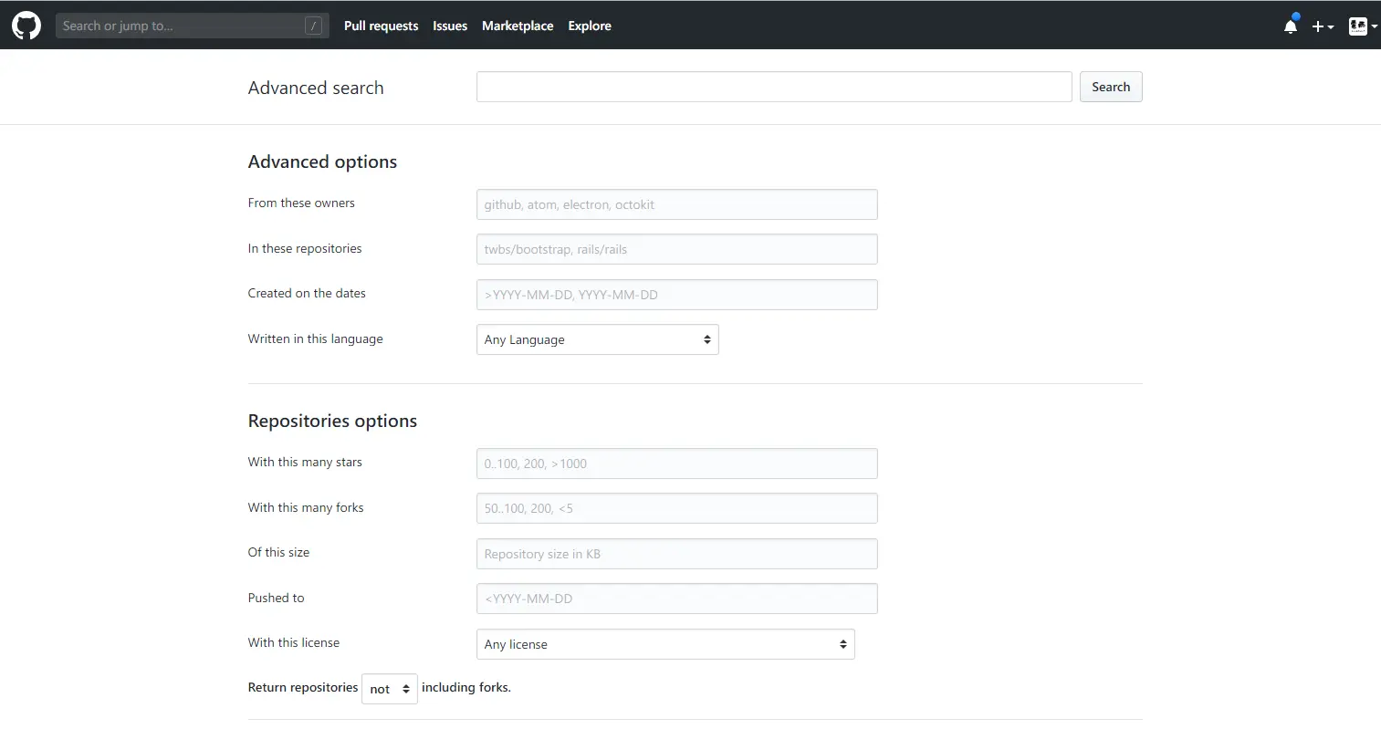也可以直接使用 GitHub 高级搜索页面 https://github.com/search/advanced