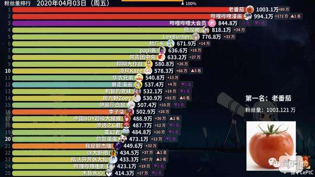 根据B站数据可视化up主「狸子LePtC」的统计,截至2020年4月3日,党妹在B站所有up主里粉丝排名达到第13。