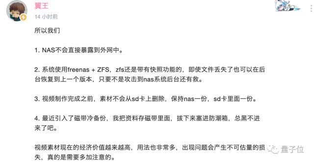 而针对普通用户,知名up主”翼王“也强调,NAS不应该直接暴露到外网,建议系统使用freenas+ZFS,同时做好备份。
