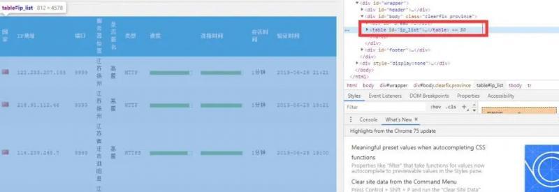接下来就是对页面内的元素进行分析,提取其中的代理信息。
