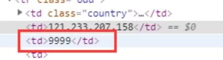 进入到 table 中,发现每一个代理分别站 table 的一列,但是这些标签分为两类,一 类包含属性 class="odd", 另一类不包含。