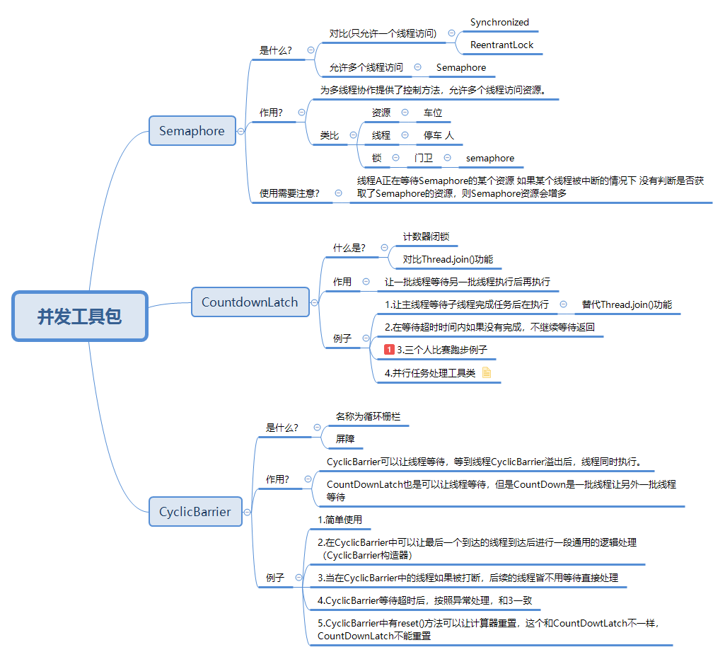 6.21 Java JUC 并发工具 a_dog_programmer 2020-04-29 231 阅读1分钟 并发工具包Semaphoe,CountDownLatch,CyclicBarrier使用总结