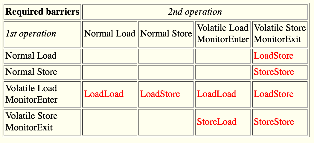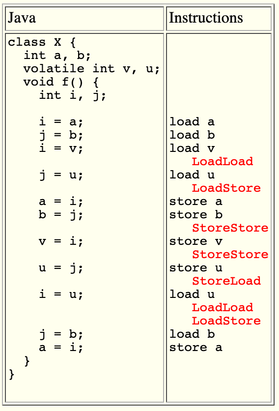 最后可以看一下 JSR-133 Cookbook 里给的例子,大概感受一下操作各种类型变量时候 Barrier 是怎么加的:
