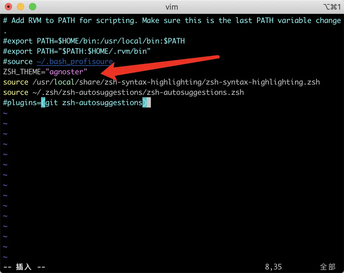 $ vim ~/.zshrc