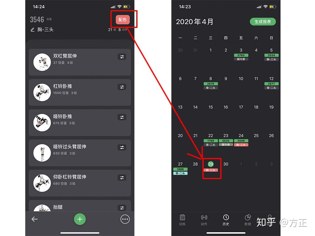 - 配色:配色是一个模版的标记,他能够让你在日历中清晰的看到你是用什么的来训练的。
