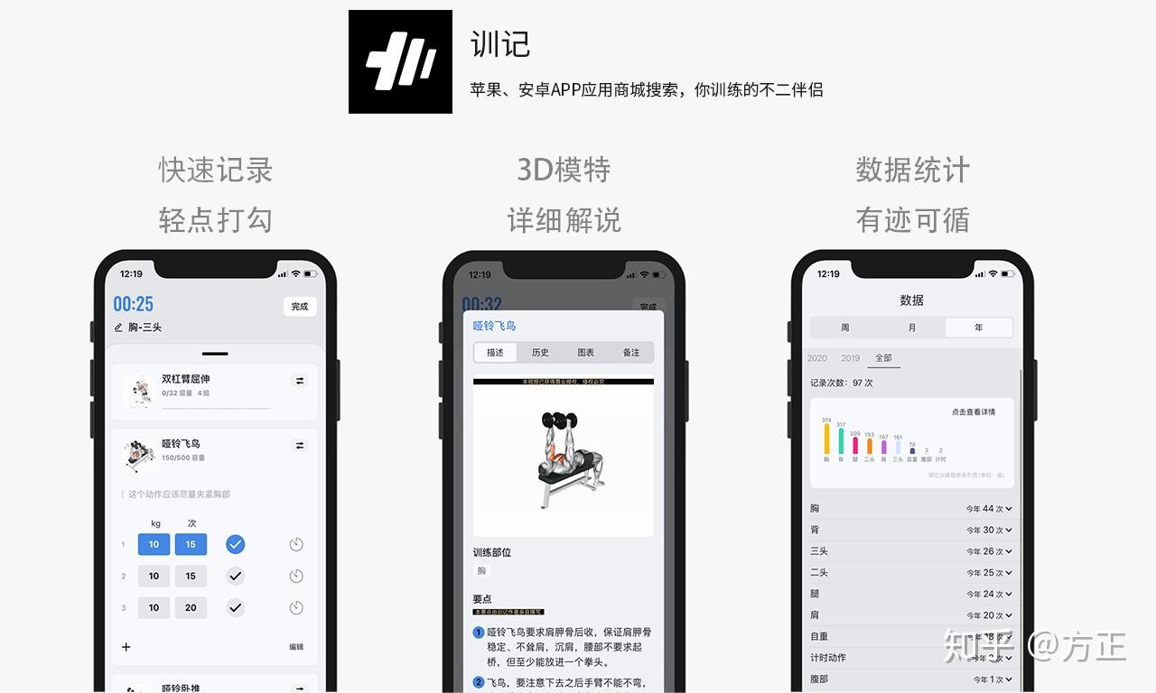 训记是以「训练日志」为主打概念的健身记录APP,与其他健身 APP 不同的是: