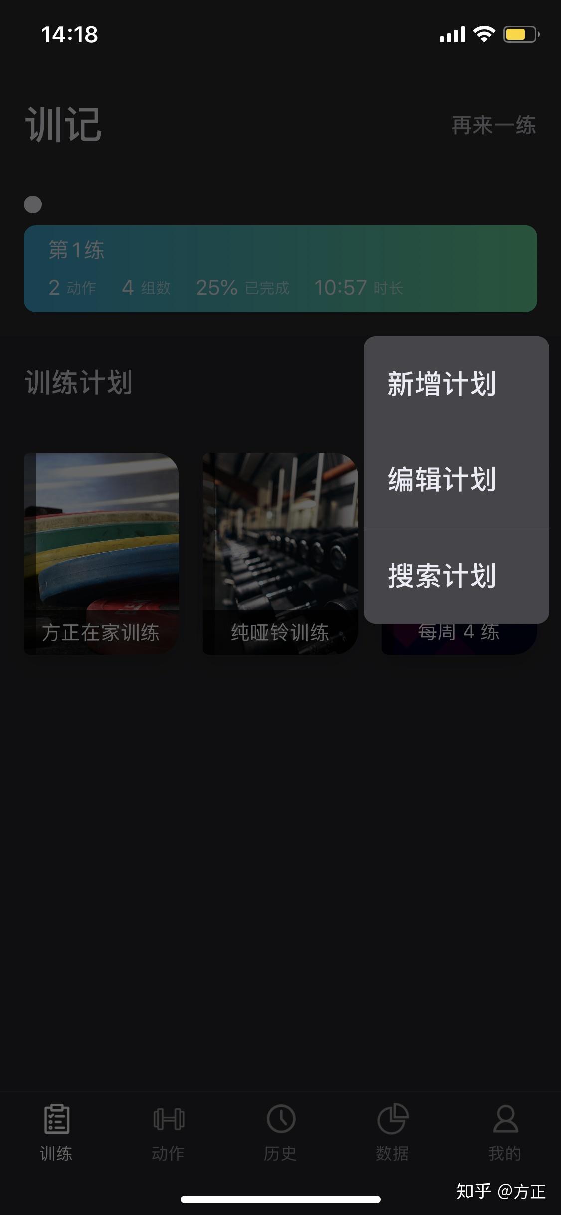 如果你想自己创建属于自己的计划本,那么你可以点击训记计划右边的菜单按钮,新增计划。