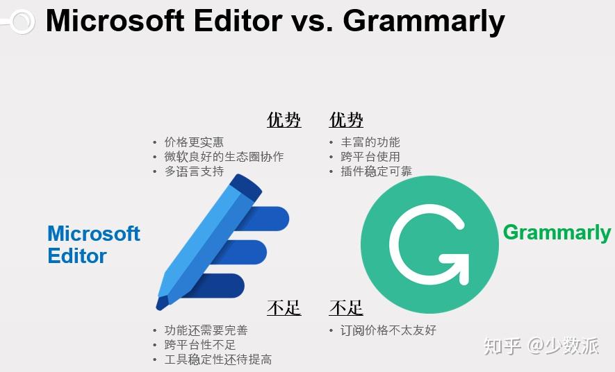 虽然 Grammarly 一直在语法检测辅助领域占据领先地位,但是此次搭载 Microsoft 365 更新推出的 Microsoft Editor 也是来势汹汹。面对这样两个内核几乎一致的语法工具,到底哪一个更适合你呢?我会先简单介绍下 Microsoft Editor 这款新工具,然后我将会从交互界面、语法检测功能,使用效果、语言支持、价格多个方面来详细对比两者的特点。