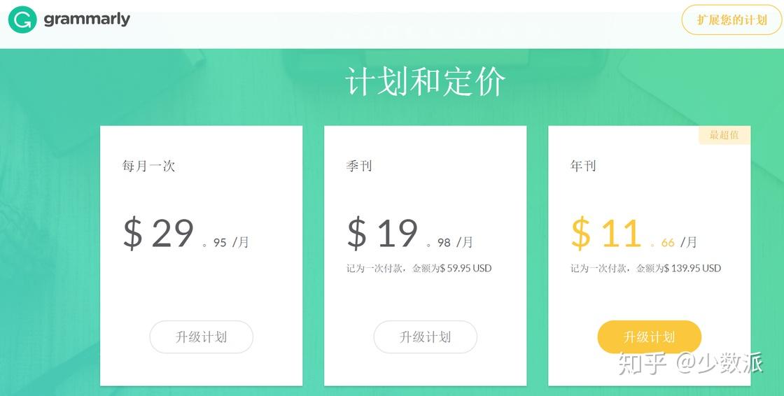 Grammarly Premium 的现在每月最低费用为 29.95 美元,或者你可以提前支付每年约 140 美元的年度订阅费用。即便它能提供众多先进文法检测功能,这个价格依然不便宜。值得欣慰的一点是,Grammarly 平时会提供大量的折扣或者学生折扣。如果你的学校恰巧购买了它,恭喜你,节省了一大笔钱。
