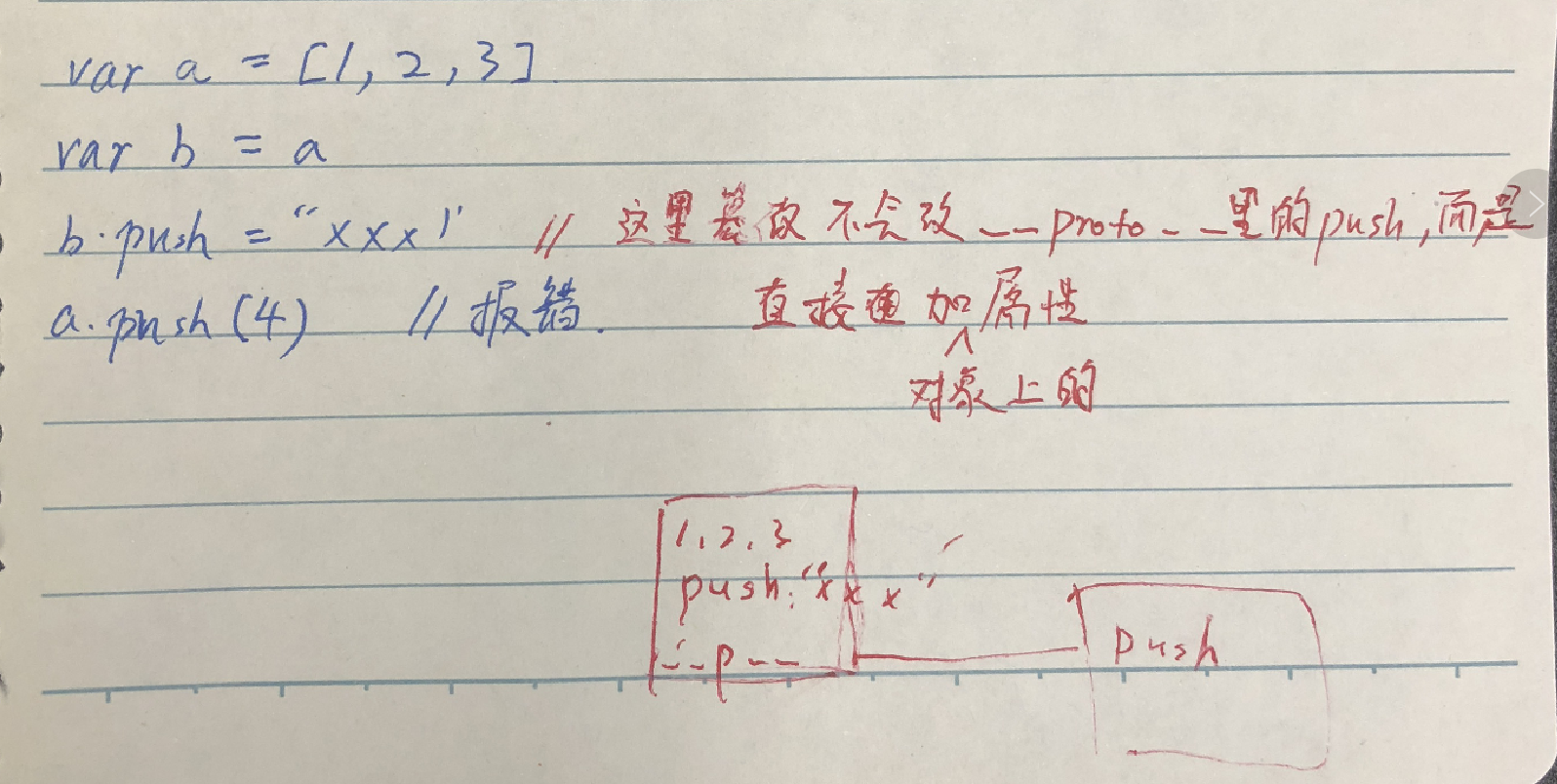 这里篡改不会改__proto__里的push,而是直接加对象上的属性