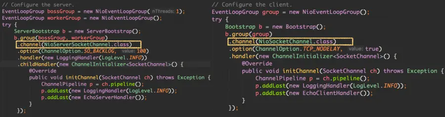 在 Bootstrap(客户端) 和 ServerBootstrap(服务端) 的启动过程中都会调用 channel(…) 方法: