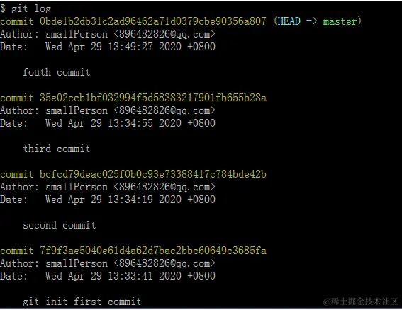 git log --显示由近到远的提交日志