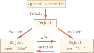 函数 marry 通过给两个对象彼此提供引用来“联姻”它们,并返回一个包含两个对象的新对象。
