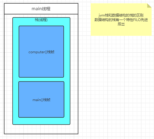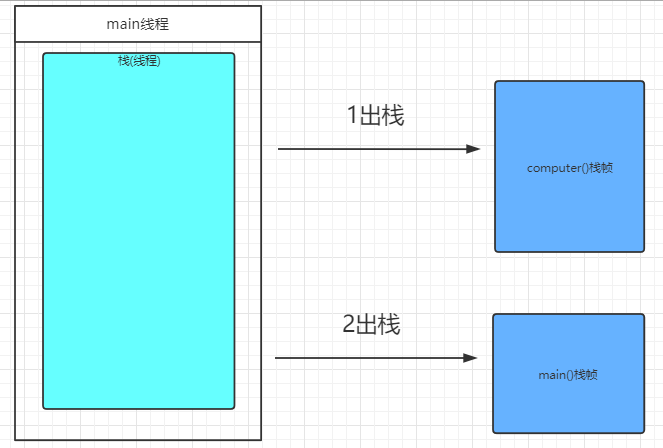 当computer方法执行完之后,computer的局部变量的内存区域都被销毁了,也就是这些局部变量的内存全部被释放了,也就是computer方法对应的栈帧就出栈了,当main方法执行完之后main()方法对应的栈帧也出栈了,这样就很符合栈的数据结构