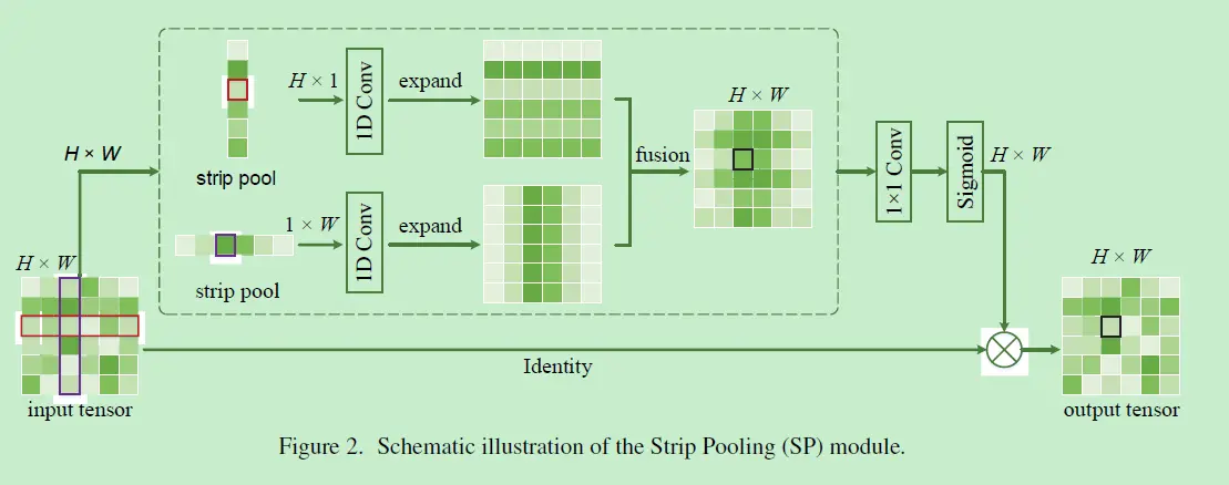 与只在一个小方框中采集信息的传统空间池化结构不同,文章提出的strip pooling条纹卷积,可以更有效地捕获远程依赖,在一些比较分离的区域捕获长程关系,使得模型捕获局部背景与防止不相关区域干扰更加便利。