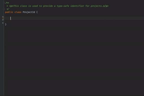 - 要为当前 java 文件中的所有元素生成 javadocs,请按 shift + ctrl + alt + G。